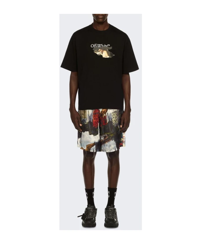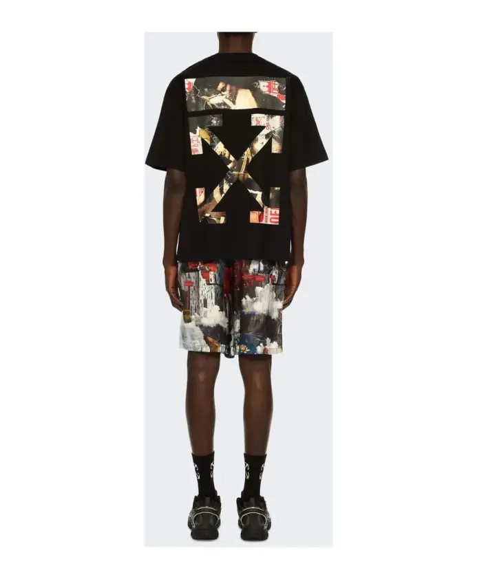 Футболка Off-White Cloudy Arrow с короткими рукавами сочетает в себе яркий логотип в стиле граффити на груди и чистую черную основу, создавая эффектный городской образ. Предназначена для повседневной носки, отлично подходит для многослойных образов или для самостоятельного ношения в повседневных комплектах. Ключевые особенности: Черный | Off-White | Короткие рукава | Контрастный логотип на груди | Принт в стиле граффити | Немного расширенные плечи | Размер и посадка: Стандартный крой; соответствует размеру - заказывайте свой обычный размер.