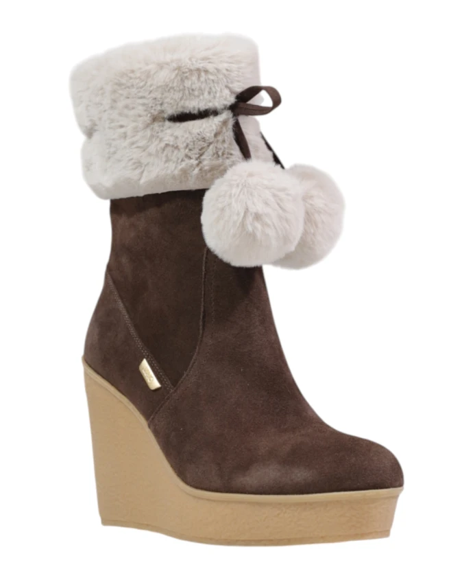 Ботильоны Liu Jo RANIA 01 сочетают в себе высококачественную замшу, мягкую отделку из искусственного меха, декоративный бант и помпоны, создавая теплый и стильный силуэт на танкетке, идеально подходящий для холодного времени года. Ключевые особенности: Коричневый | Замша | Обеспечивает тепло | Устойчивая поддержка благодаря танкетке | Танкетка | Мягкая отделка из искусственного меха | Декоративный бант и помпоны | Металлический логотип сбоку | Замшевая отделка | Танкетка | Состав и уход: Замша | Искусственный мех | Металлическая фурнитура