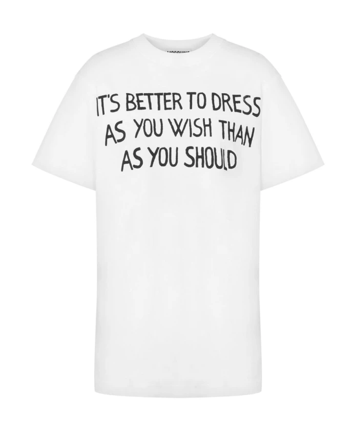 Футболка Moschino с буквенным принтом - это легкая хлопковая футболка с круглым вырезом, сочетающая в себе яркий брендинг и повседневный комфорт. На передней части футболки расположен слоган/буквенный принт, а на спине - логотип, что придает ей неповторимый, повседневный вид. Основные характеристики: Белый | Хлопок | Легкий хлопковый трикотаж | Дышащий материал | Ребристый круглый вырез | Короткие рукава | Слоган/буквенный принт спереди | Логотип на спине | Прямой низ | Размер и посадка: Стандартный крой | Состав ткани и уход: 100% хлопок