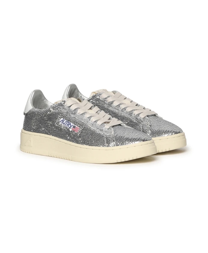 Низкие кроссовки Autry Dallas Low Sparkling: эффектные низкие кроссовки с блестящим верхом, которые добавят блеска как повседневным, так и вечерним образам. Ключевые особенности: Серебристый | Белый | Полиэстер | Шнуровка | Мягкий воротник | Подкладка из кожи и махровой ткани | Резиновая подошва | Верх с пайетками | Круглый носок | Детали с логотипом | В комплекте персонализированная сумка-шоппер | Состав и уход: Верх: 80% полиэстер, 15% нейлон, 5% кожа | Подкладка: 40% кожа, 50% хлопок (махровая ткань), 10% нейлон | Подошва: 100% резина