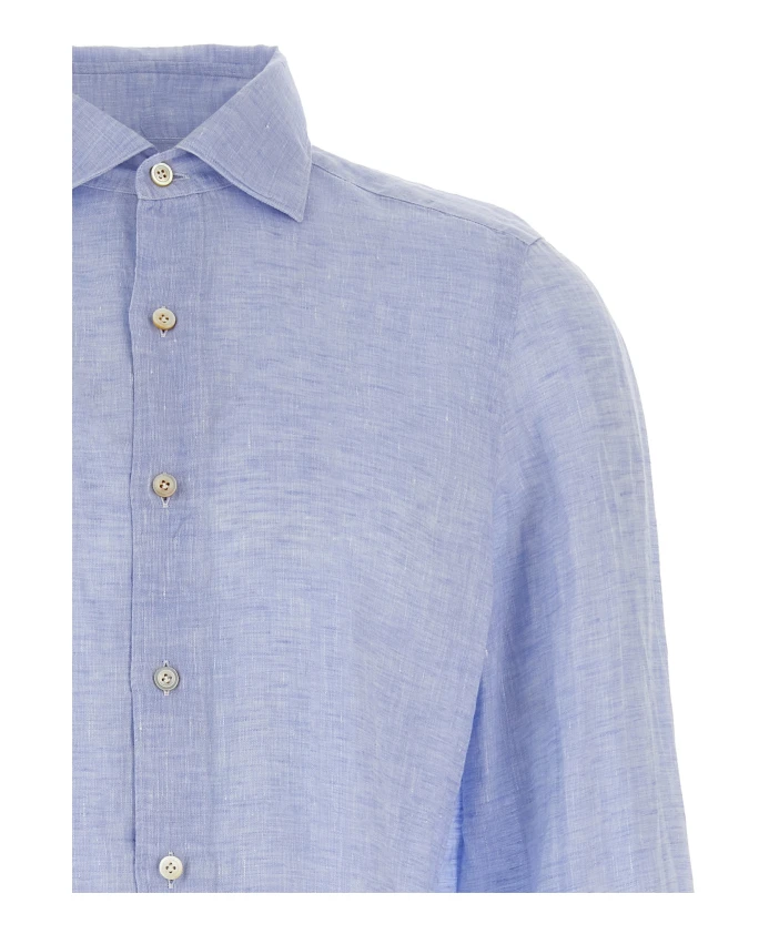 Рубашка Finamore Gaeta от Finamore - это легкая льняная рубашка, созданная для элегантной повседневной носки в теплую погоду. Она сочетает в себе дышащую ткань и классические детали для создания изысканного повседневного образа. Ключевые особенности: Синий | Светло-синий | Лен | Дышащая ткань | Легкая | Застежка на пуговицы спереди | Длинные рукава на пуговицах | Перламутровые пуговицы | Отложной воротник | Простые манжеты | Закругленный низ | Размеры и посадка: Стандартный крой | Состав ткани и уход: 100% лен | Машинная стирка при 30°C