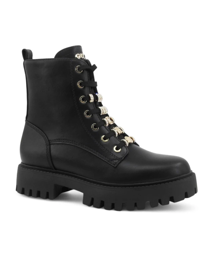 Ботинки Guess на шнуровке с резиновым верхом и рифленой резиновой подошвой. Эти ботинки, предназначенные для повседневной носки, сочетают в себе надежную систему шнуровки и каблук высотой 4 см для устойчивости и повышенного комфорта. Ключевые особенности: Черный | Черный | Резина | Шнуровка | Металлический крючок на верхе | Петля для удобного надевания на пятке | Ботильоны | Логотип на язычке | Размеры и посадка: Высота каблука: 4 см | Высота щиколотки | Состав материала и уход: Верх: Резина | Подкладка: Ткань | Кожа | Подошва: Резина