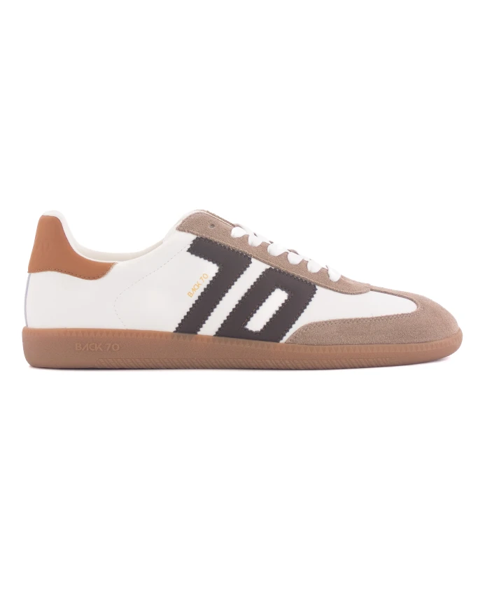 Ретро-кроссовки BACK70, вдохновленные футболом, с мягкой съемной стелькой для комфортной повседневной носки. Ключевые особенности: Белый | Серо-коричневый | Коричневый | Кожа | Замша | Прочная резиновая подошва | Съемная стелька из пеноматериала | Мягкая стелька | Шнуровка | Вышивка | Текстурированный верх | Классическая резиновая подошва | Размеры и посадка: каблук 2,54 см | Соответствует размеру | Состав и уход: Кожа | Замша | Текстильная подкладка | Стелька из пеноматериала | Синтетическая промежуточная подошва | Резиновая подошва