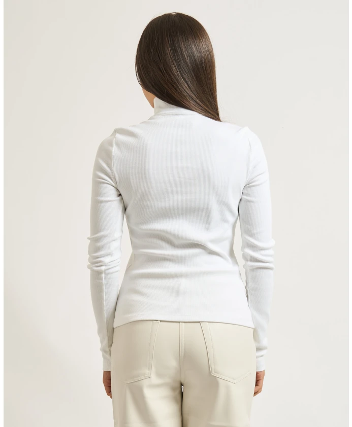 Ребристый хлопковый топ с высоким воротником Calvin Klein, белый