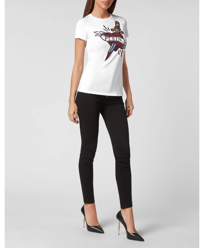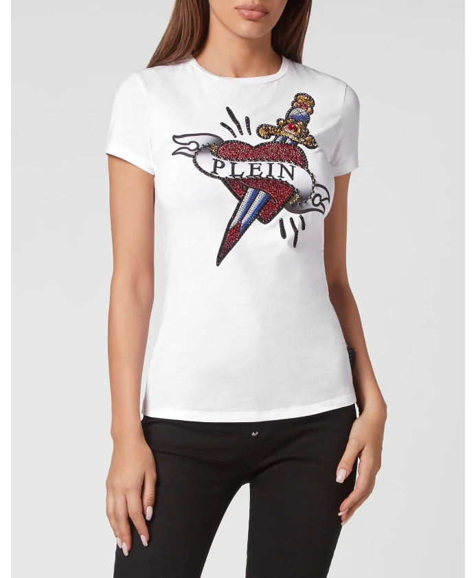 Футболка Philipp Plein Pure Love сочетает в себе принты в стиле «татуировки любви» с украшениями из драгоценных камней и шестиугольной нашивкой из сафьяновой кожи PP на кокетке, создавая эффектную повседневную футболку. Ключевые особенности: Белый | Хлопковый трикотаж | Двойная строчка | Нашивка из сафьяновой кожи на кокетке | Круглый вырез | Ребристый трикотажный вырез | Принты в стиле «татуировки любви» | Украшения из драгоценных камней | Шестиугольная нашивка из сафьяновой кожи PP | Состав и уход: 100% хлопок | 100% стекловолокно