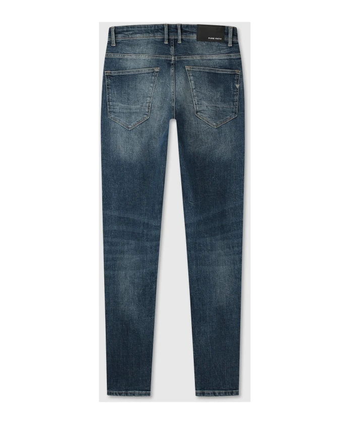 Откройте для себя джинсы The Jone от Pure Path - темно-синие зауженные джинсы для мужчин. Изготовленные из 95% хлопка, 4% полиэстера и 1% эластана, эти джинсы имеют среднюю посадку на талии и удобный, облегающий силуэт. Энзимная обработка и 3D-эффект потертостей придают им легкий, слегка поношенный вид. Завершает образ черная кожаная нашивка на поясе и небольшой вышитый треугольный логотип на правом заднем кармане. Эти джинсы одновременно стильные и практичные. Благодаря застежке-молнии они идеально подходят для повседневной носки.