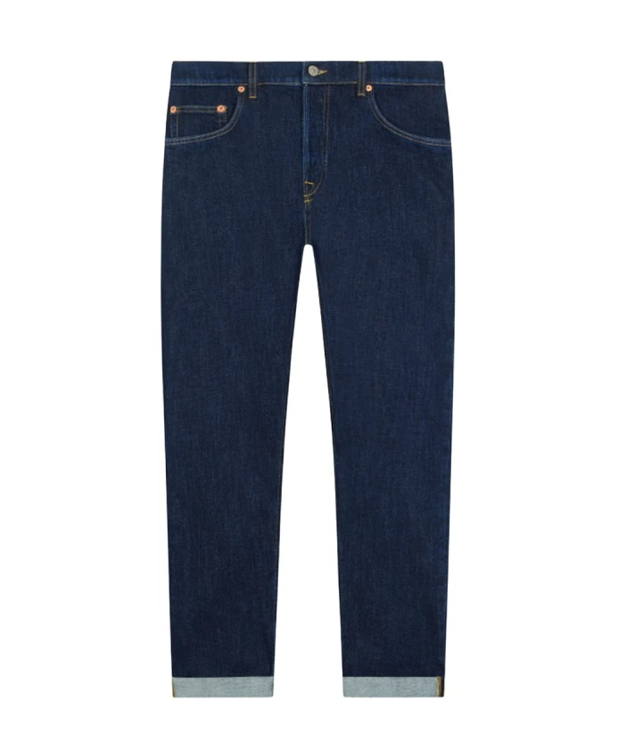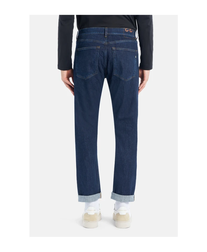 Джинсы Dondup зауженного кроя отличаются обтекаемым силуэтом и эластичностью, идеально подходящим для повседневной носки. Они отлично подойдут для повседневных и городских образов, сочетая классический стиль с пятью карманами и подвернутым низом для современного завершения. Основные характеристики: Синий | Хлопковый деним | Эластичная ткань | 5 карманов | Застежка на пуговицу и молнию | Шлевки для ремня | Подвернутый низ | Прямой низ | Размеры и посадка: Зауженный крой | Состав ткани и уход: 98% хлопок, 2% эластан | Машинная стирка