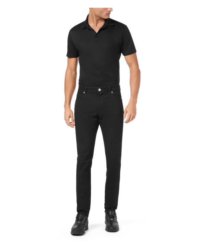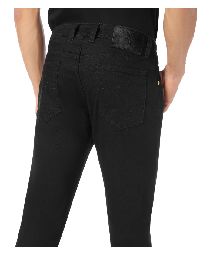 Джинсовые брюки Billionaire Super Straight Cut сочетают в себе эффект потертости, прямой современный силуэт и вышитую монограмму, создавая расслабленный и оригинальный образ. Ключевые особенности: Черный | Джинсовая ткань | Слегка эластичная | 5 карманов | Застежка на одну металлическую пуговицу | Эффект потертости | Вышитая монограмма на задних карманах | Пришитая этикетка на поясе сзади | Швы и петли в тон | Размеры и посадка: Супер прямой крой | Состав ткани и уход: 99% хлопок, 1% эластан | 65% хлопок, 35% полиэстер (подкладка)
