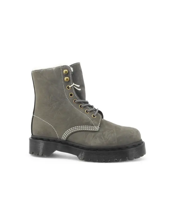 Ботинки Dr. Martens на шнуровке с кожаным верхом и резиновой подошвой. Эти ботильоны идеально подходят для повседневной носки, сочетая классический дизайн на шнуровке с умеренным каблуком высотой 4 см для устойчивой поддержки. Ключевые особенности: Серый | Кожа | Резиновая подошва для сцепления | Шнуровка | Текстильная/резиновая подкладка для комфорта | Высота до щиколотки | Классический дизайн на шнуровке | Каблук 4 см | Размеры и посадка: Каблук: 4 см | Материал и уход: Верх: Кожа | Подкладка: Текстиль/Резина | Подошва: Резина