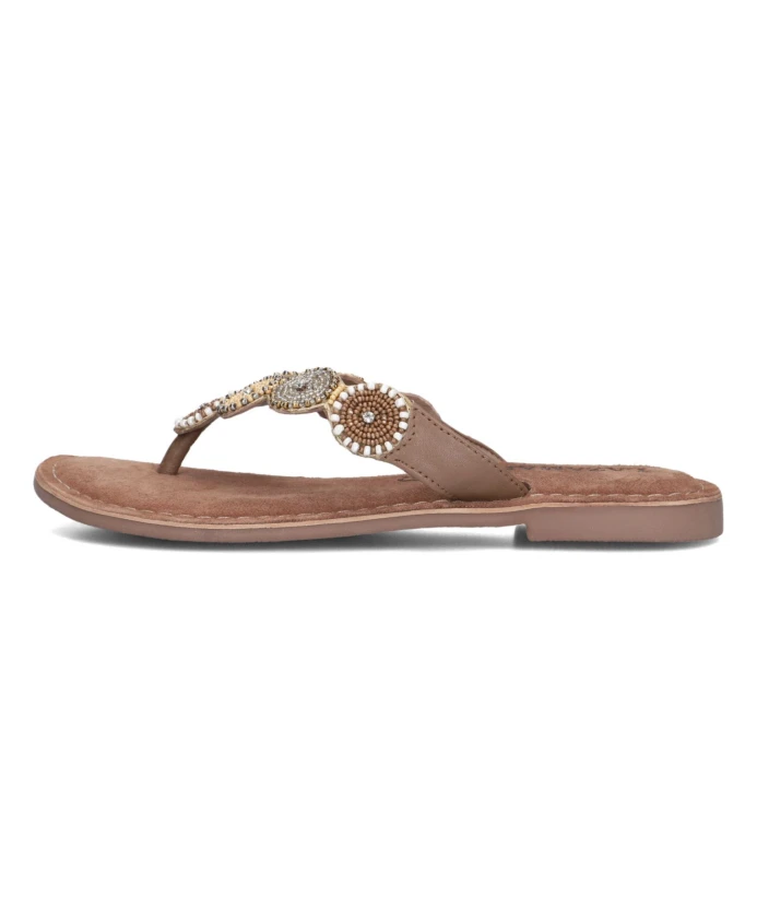 Встречайте весну и лето стильно с этими бежевыми шлепанцами от LAZAMANI, модель 75.451. Эти шлепанцы имеют закругленный носок и удобный каблук высотой 1 см. Внутренняя часть выполнена из мягкой смеси кожи и замши, а верхняя - из текстиля. Идеально подходят для спокойного дня на пляже или летнего пикника в парке, они легко сочетаются со струящимся платьем макси или повседневными шортами, создавая свежий летний образ. Резиновая подошва обеспечивает сцепление и комфорт, поэтому вы можете наслаждаться солнечными днями без опасений.
