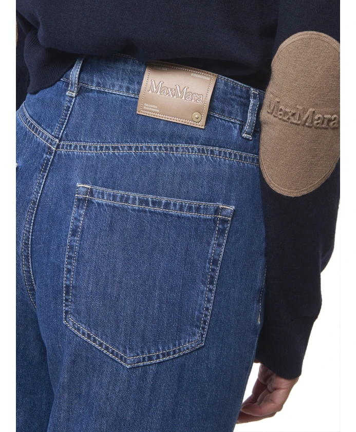 Дополните свой джинсовый образ этими прямыми джинсами Max Mara. Они имеют пять карманов, широкие штанины, застежку на молнию и пуговицу, накладные карманы и уникальную этикетку сзади. Изготовлены из 93% хлопка и 7% капока классического синего цвета. Только химчистка. Эти джинсы имеют стандартный, широкий крой и изготовлены из выстиранного хлопкового и капокового денима. Они имеют потайную застежку на молнию и пуговицу, накладные карманы сзади, шлевки для ремня и уникальную этикетку на поясе сзади. Состав: 93% хлопок, 7% капок.