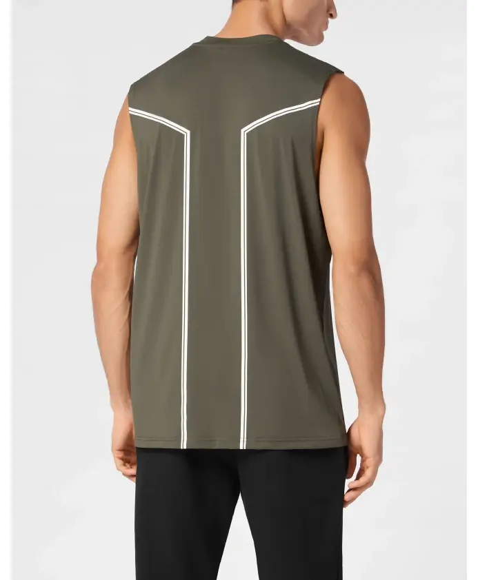 Спортивная майка Plein Sport Tank Top - это трикотажная майка без рукавов, сочетающая спортивный комфорт с эффектным принтом Framis на спине. Она предназначена для тренировок и повседневной носки, с изысканными деталями, такими как ребристый трикотажный воротник и прочная двойная строчка. Ключевые особенности: Зеленый | Военный | Трикотаж из нейлона и полиэстера | Двойная строчка | Без рукавов | Ребристый трикотажный воротник | Принт Framis на спине | Размеры и посадка: Свободный крой | Состав ткани и уход: Нейлон | Полиэстер