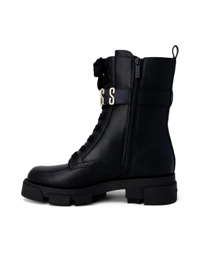 Ботинки Guess на шнуровке - это прочный, стильный городской вариант с верхом из искусственной кожи и массивной резиновой подошвой, идеально подходящий для повседневной носки осенью и зимой, обеспечивающий надежное сцепление с поверхностью. Основные характеристики: Черный | Искусственная кожа | Резиновая подошва для сцепления и долговечности | Шнуровка | Текстильная подкладка | Высота до щиколотки | Простой крой | Размеры и посадка: Высота каблука: 4,5 см | Состав материала и уход: 20% другие волокна | 80% искусственная кожа