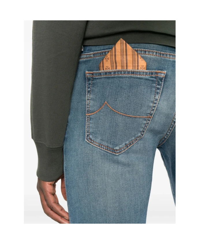 Джинсы Jacob Cohen Nick Slim Jeans - это джинсы зауженного кроя, изготовленные в Италии, созданные для элегантного образа благодаря эластичной ткани и изысканным стеганым деталям. Эти джинсы идеально подходят для повседневной носки, сохраняя при этом утонченный вид. Ключевые особенности: Синий | Хлопок | Эластичная ткань | Мягкая на ощупь | Застежка на пуговицу и молнию | Шлевки для ремня | Пять карманов | Стеганые детали | Заклепки | Логотип | Крой и размеры: Зауженный | Состав и уход: 81% хлопок | 11% лиоцелл | 8% эластан