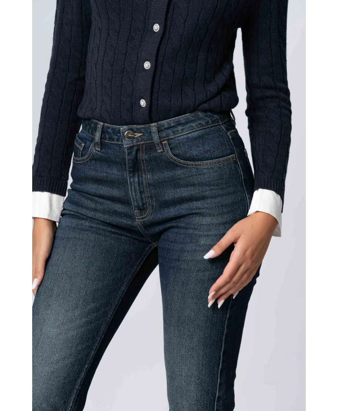Джинсовые брюки Kocca NICEAX сочетают в себе зауженный крой в области бедер и слегка расклешенные штанины, создавая непринужденно-шикарный повседневный образ. Ключевые особенности: Синий | Хлопок | Легкая эластичность | Пять карманов | Застежка на пуговицу и молнию | Шлевки для ремня | Полная длина | Расклешенные штанины | Двойная строчка по низу | Контрастная строчка | Размеры и посадка: Рост модели 175 см, размер S/42 | Зауженный крой | Слегка расклешенные от колена (расклешенные) | Состав и уход: 99% хлопок | 1% эластан
