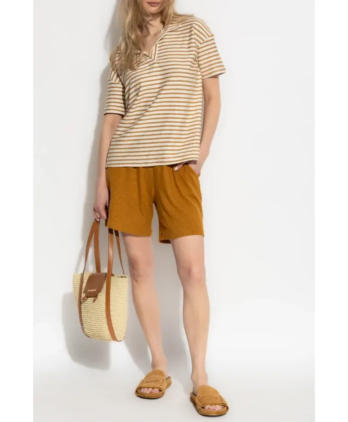 Представляем шорты «Лето» от Hanro - сочетание элегантности и комфорта, идеально подходящее для теплых дней. Эти коричневые шорты изготовлены из высококачественной смеси вискозы и льна, обеспечивающей мягкость и воздухопроницаемость. Ключевые особенности: Коричневый | Вискоза | Лен | Дышащая ткань | Эластичный пояс | Боковые карманы | Свободный крой | Длина чуть выше колена | Размеры и посадка: Свободный крой | Состав и уход: 55% вискоза | 45% лен | Машинная стирка в холодной воде, сушка в барабане при низкой температуре