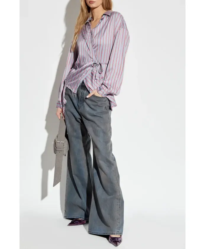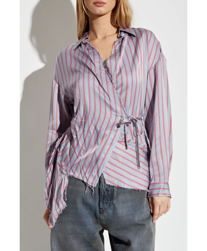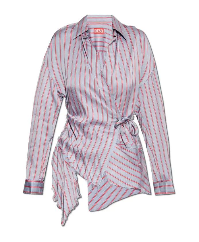 Представляем рубашку C-Razy от Diesel - эффектную вещь, сочетающую современный стиль с классической элегантностью. Глубокий синий цвет с красными и белыми полосами создает динамичный и изысканный образ. Ключевые особенности: Синий | Красный | Белый | Вискоза | Свободный крой | Длинные рукава | Асимметричный низ | Бахрома | Узел спереди | Классический воротник | Манжеты на пуговицах | Размеры и посадка: Свободный крой | Состав и уход: 100% вискоза | Машинная стирка в холодной воде, сушка в барабане при низкой температуре.
