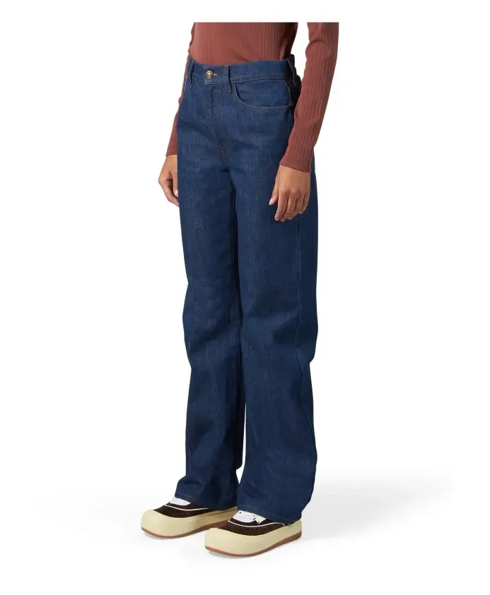 Брюки Philippe Model Wide Leg изготовлены из джинсовой ткани плотностью 12 унций цвета индиго и имеют уличный силуэт. Они украшены прорезиненной этикеткой с логотипом и пятым карманом с силуэтом щита, что придает им изысканный, узнаваемый вид. Ключевые особенности: Синий | Джинсовая ткань | Прорезиненная этикетка | Пятый карман | Слегка завышенная талия | Асимметричная кокетка на спине | Уличный силуэт | Пятый карман с силуэтом щита | Размеры и посадка: Широкий крой | Слегка завышенная талия | Состав и уход: 100% хлопок