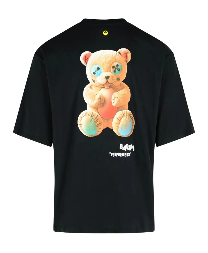 Футболка BARROW с логотипом и принтом в виде плюшевого мишки - это хлопковая футболка с круглым вырезом, сочетающая контрастный логотип на груди и эффектный рисунок плюшевого мишки на спине. Свободный крой и классические детали делают ее подходящей для повседневной носки. Основные характеристики: Черный | Хлопок | Круглый вырез | Короткие рукава | Логотип на груди | Принт в виде плюшевого мишки на спине | Прямой низ | Размеры и посадка: Стандартные размеры унисекс | Состав материала и уход: 100% хлопок | Ручная стирка