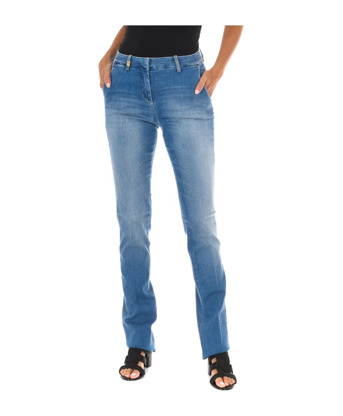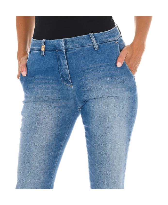 Длинные джинсы из денима от MET для женщин. Модель имеет петли для ремня с металлизированной отделкой, застежку на пуговицу и молнию спереди, два боковых кармана, два декоративных задних кармана, нашивку с логотипом бренда на поясе сзади, эффект потертости, прямой низ, эластичную ткань и видимые швы в тон. Состав: 98% хлопок, 2% эластан. Инструкции по уходу: машинная стирка при температуре до 40°C, глажка при средней температуре до 110°C, сушка в сушилке при низкой температуре, не отбеливать, не подвергать химчистке.