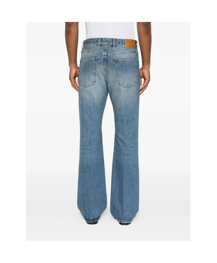 Джинсы BLK DNM Jeans 77 сочетают в себе винтажный стиль и современный силуэт уличной одежды. Эти джинсы имеют высокую талию и слегка расклешенный низ, отделаны видимой строчкой и необработанным краем для создания эффекта поношенности. Ключевые особенности: Синий | Деним | Пять карманов | Шлевки для ремня | Застежка на пуговицы | Строчка | Необработанный край | Размеры и посадка: Высокая талия | Стандартный крой в области бедра и колена с легким расклешением по низу | Расклешенный силуэт | Материал и уход: 100% хлопок