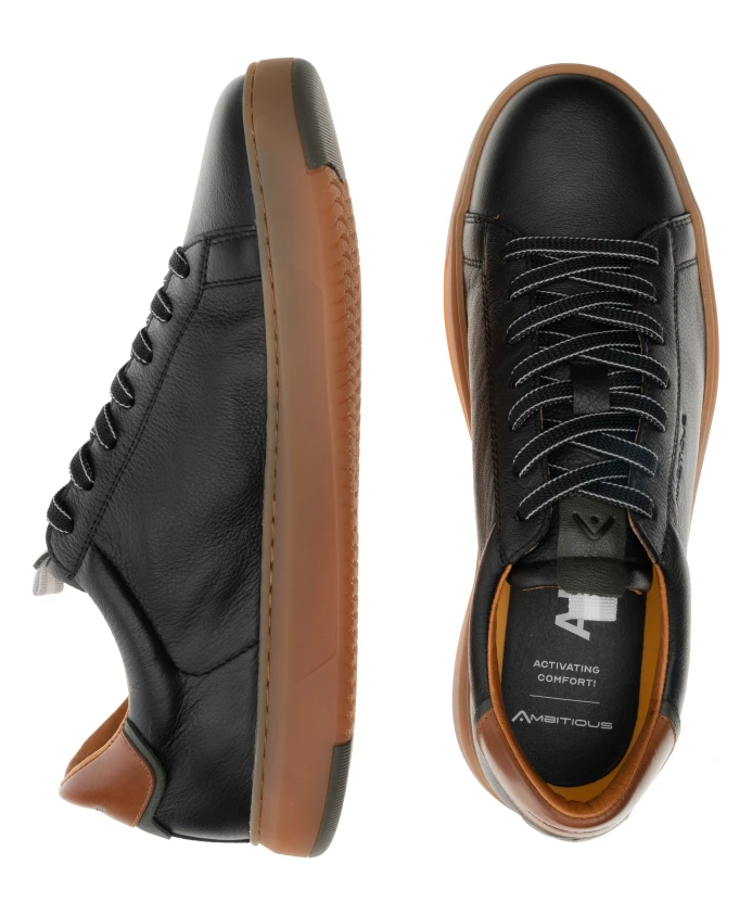 Амбициозные низкие кроссовки AKTIF отдают приоритет комфорту и гибкости. Они сочетают в себе монохромный кожаный верх с очень гибкой подошвой и контрастной подошвой из натуральной резины, что придает им ретро-стиль. Ключевые особенности: Черный | Кожа | Ориентированность на комфорт | Очень гибкая подошва | Низкий силуэт | Монохромный кожаный верх | Контрастная подошва из натуральной резины | Контрастная задняя панель | Подошва в стиле ретро | Состав и уход: Верх: Кожа | Подкладка: Кожа | Подошва: Резина, полиуретан