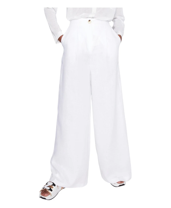 Откройте для себя элегантность этих широких брюк от Armani Exchange. Выполненные в белоснежном цвете, эти брюки впечатляют своим свободным кроем и подходят как для повседневной носки, так и для официальных мероприятий. Основные характеристики: Белый | Лен | Широкие штанины | Высокая талия | Застежка на пуговицу и молнию | Боковые карманы | Прорезной задний карман | Металлический логотип | Размеры и посадка: Свободный крой | Состав и уход: 100% лен | Стирать в холодной воде, сушить в сушилке при низкой температуре.
