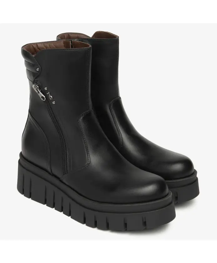 Ботильоны на платформе NeroGiardini - это кожаные ботильоны итальянского производства на платформе с боковой застежкой-молнией, что делает их универсальными и подходящими как для офиса, так и для вечерних выходов. Основные характеристики: Черный | Кожа | Резиновая подошва для лучшего сцепления | Боковая застежка-молния | Платформа | Круглый носок | Каблук средней высоты | Размеры и посадка: Высота каблука: 6 см | Стандартная посадка - выбирайте свой обычный размер. | Состав и уход: Верх из кожи | Резиновая подошва