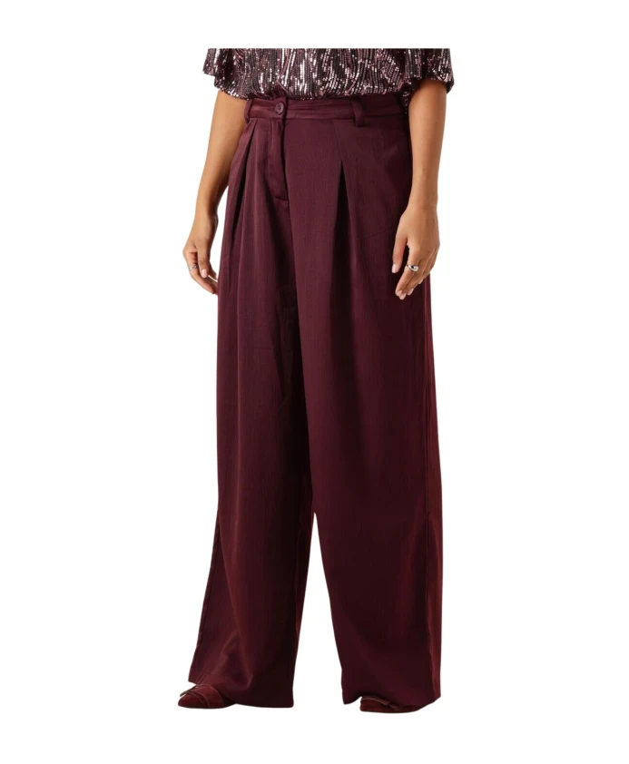 Брюки Moves Lauro Pant - это широкие брюки со складками насыщенного бордового цвета, выполненные в классическом стиле для изысканного и комфортного образа. Идеально подходят для посещения галерей, неспешных обедов или элегантной повседневной носки. Ключевые особенности: Красный | Бордовый | Полиэстер | Мягкая ткань | Широкие брюки со складками | Классический крой | Силуэт палаццо | Размеры и посадка: Широкие брюки | Высокая талия | Состав и уход: 60% полиэстер | 37% вискоза | 3% эластан | Машинная стирка при 30°C