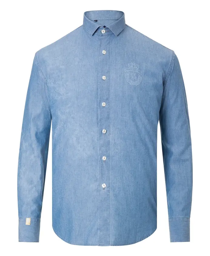 Рубашка Billionaire Silver Cut LS Daniel сочетает в себе изысканный крой и яркий фирменный стиль. Она украшена позолоченным логотипом «Billionaire» на кокетке спины и напечатанным гербом на левой стороне груди. Ключевые особенности: Светло-голубой | Хлопок | Воротник со съемными фиксаторами | Квадратные перламутровые пуговицы | Позолоченный логотип «Billionaire» на кокетке спины | Напечатанный герб на левой стороне груди | Размеры и посадка: Silver Cut | Приталенный крой | Состав материала и уход: 100% хлопок