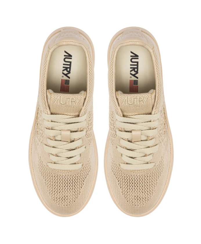 Поднимите свой стиль на новый уровень с этими темно-бежевыми низкими женскими кроссовками Autry 'Medalist Easeknit'. Они имеют дышащий верх из перфорированной ткани Flyknit, кожаную заднюю часть с тисненым логотипом и сверхлегкую резиновую подошву с культовым тисненым принтом в виде стрелы A. Модель дополнена шнуровкой, хлопковыми плоскими шнурками, вышитой нашивкой на язычке и слегка мягким воротником вокруг щиколотки. Задняя часть отделана кожей. Кожаная стелька высотой 2 см. Высота подошвы: 2,5-3,5 см.