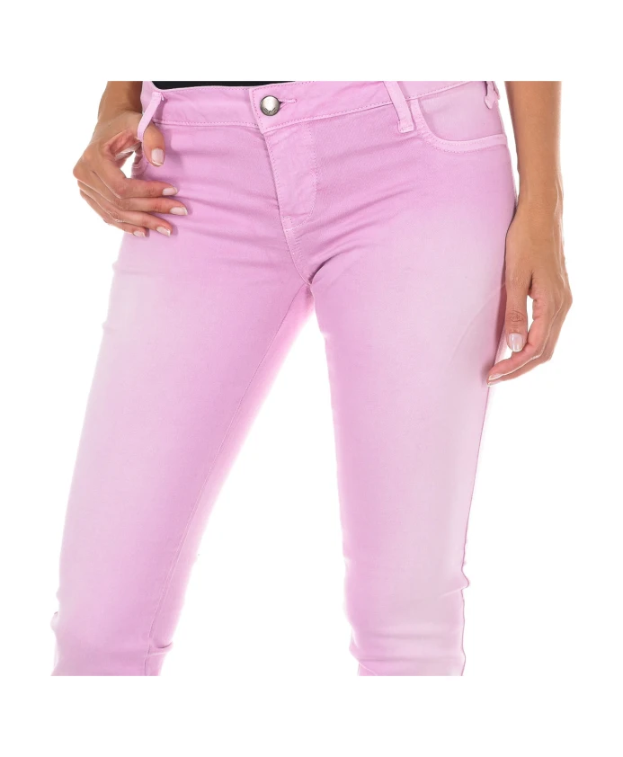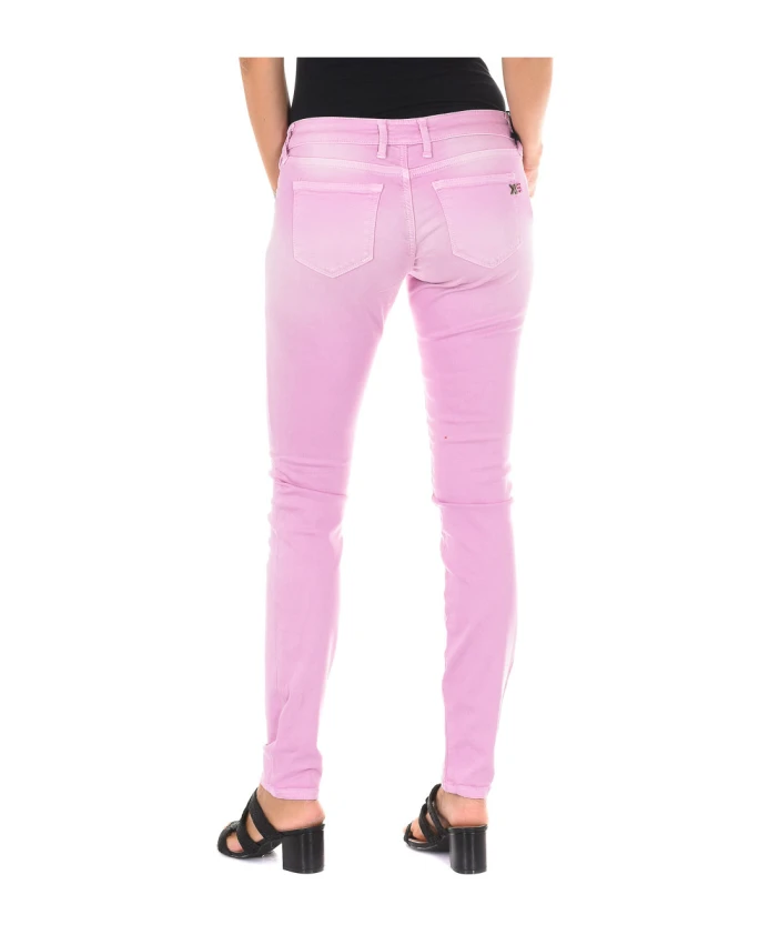 Джинсы-скинни MET для женщин. Длинные джинсовые брюки с петлями для ремня, застежкой на пуговицу и молнию спереди. Два декоративных передних кармана, два открытых задних кармана с металлизированным логотипом бренда. Эластичная ткань с эффектом потертости. Зауженный крой. Видимые швы в тон. Состав: 98% хлопок, 2% эластан. Инструкции по уходу: - Машинная стирка при температуре до 40°C. - Гладить при средней температуре, максимум 110°C. - Сушить в сушильной машине. - Не отбеливать. - Не подвергать химчистке.