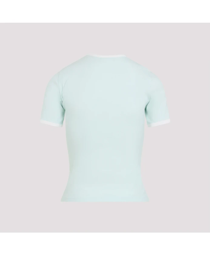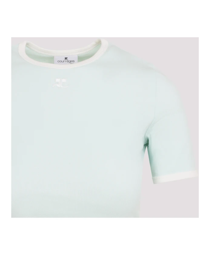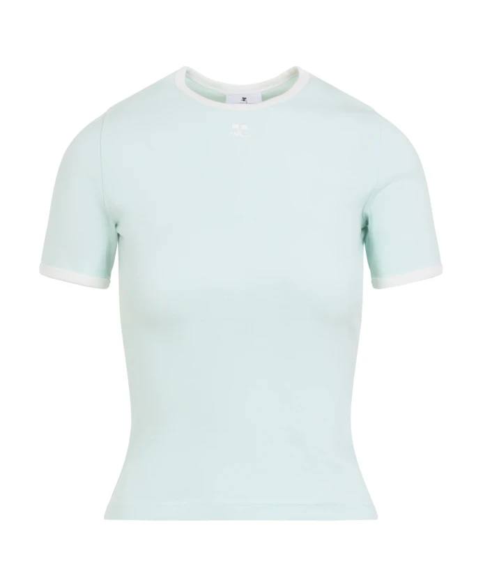 Футболка Courrèges Signature - это хлопковая футболка с короткими рукавами, контрастной отделкой и логотипом AC. Она имеет приталенный, сшитый по фигуре силуэт, идеально подходящий для повседневной носки и многослойных образов. Ключевые особенности: Зеленый | Светло-мятный | Хлопок | Дышащая ткань | Круглый вырез | Короткие рукава | Контрастная отделка | Логотип AC под вырезом | Прямой низ | Размеры и посадка: Приталенный крой; для большего комфорта закажите на размер больше. | Состав и уход: 100% хлопок