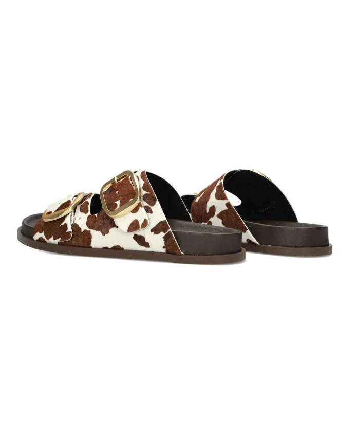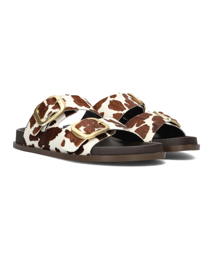 Откройте для себя игривое очарование этих шлепанцев с анималистическим принтом от Notre-v, идеально подходящих для солнечной весенней прогулки или расслабляющего дня на пляже. Эти шлепанцы с ярким анималистическим принтом и верхом из конского меха сочетают в себе стиль и комфорт. Основные характеристики: Коричневый | Конский мех | Застежка на пряжке | Круглый носок | Анималистический принт | Размер и посадка: Стандартная | Состав и уход: Кожаная подкладка | Резиновая подошва | Протирать влажной тканью.