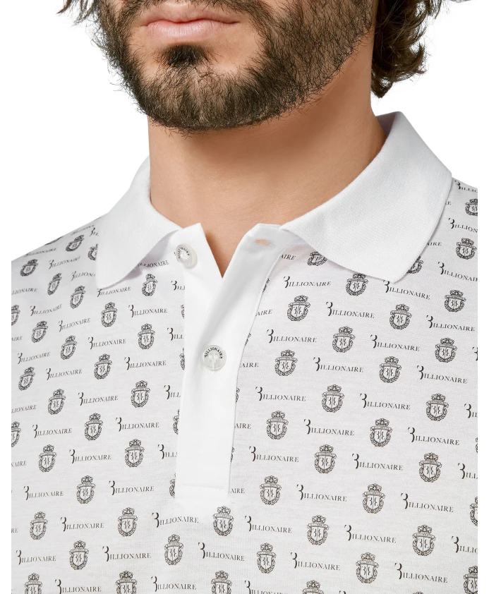 Поло Billionaire SS Crest - это поло из высококачественного хлопкового трикотажа с принтами в виде герба и надписи бренда по всей поверхности. Модель выполнена в стиле изысканной повседневной базовой вещи с выразительными деталями на воротнике и подоле. Ключевые особенности: Белый | Хлопок | Пуговицы с логотипом | Два разреза по низу | Принт с гербом и надписью бренда по всей поверхности | Контрастный тканый ребристый воротник и планка на пуговицах | Двойная строчка по низу | Состав и уход: 100% хлопок