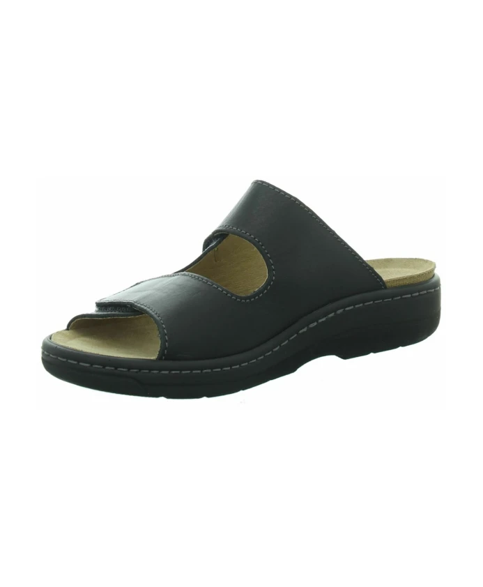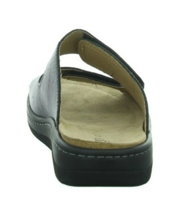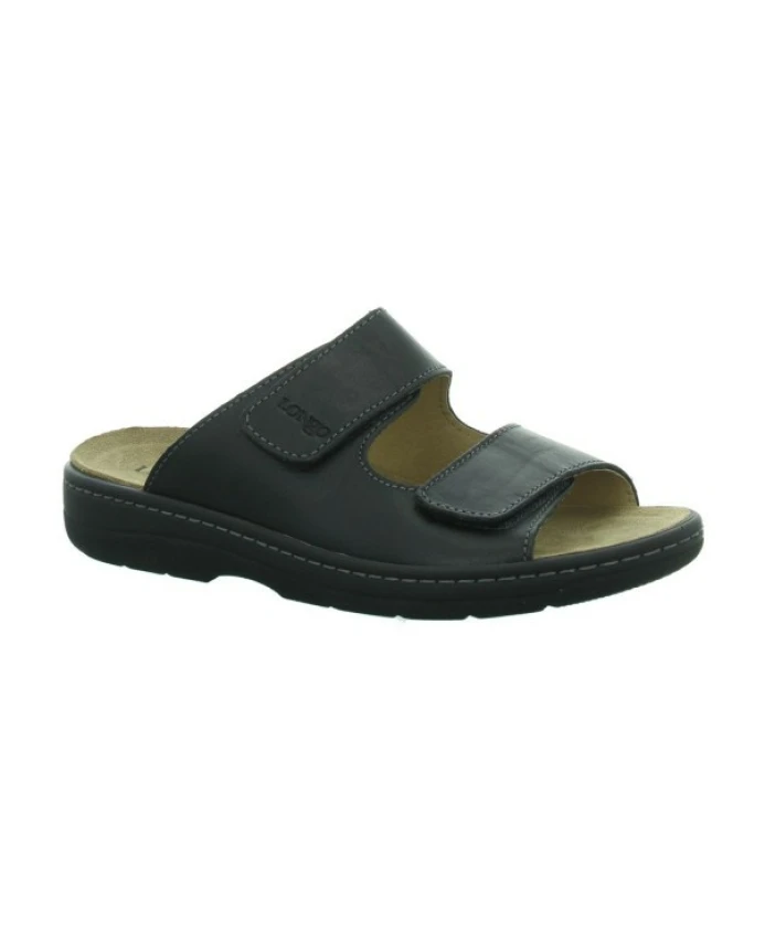 Мужские мюли от Longo, изготовленные из высококачественной гладкой кожи. Внутренняя часть обуви отделана кожей, дубленой без использования хрома. Они имеют стандартную ширину и совершенно плоский каблук. Мягкая полиуретановая подошва защищает суставы и обеспечивает оптимальную амортизацию при каждом шаге. Застежка на липучке позволяет легко и удобно надевать и снимать обувь, а также обеспечивает надежную фиксацию. Возможна бесступенчатая регулировка по размеру стопы. Размер соответствует стандартному.
