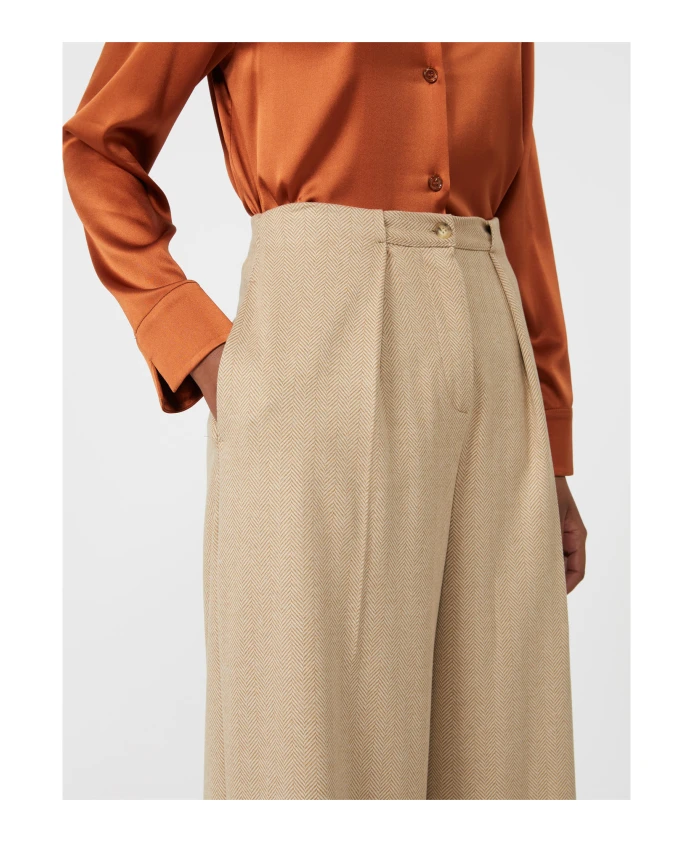Брюки MM MAX MARA Cali от Max Mara сочетают в себе элегантные детали и широкий крой, предлагая изысканный вариант как для офисных образов, так и для более торжественных вечеров. Ключевые особенности: Бежевый | Серый | Вискоза | Застежка на пуговицу и молнию | Передние боковые карманы | Широкий крой | Складки | Проглаженная центральная складка | Микроузор | Размеры и посадка: Запашной крой | Высокая талия | Стандартный крой | Широкий крой | Состав ткани и уход: 57% вискоза | 41% полиэстер | 2% эластан
