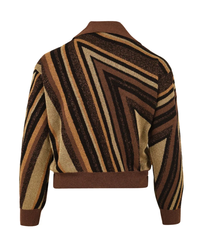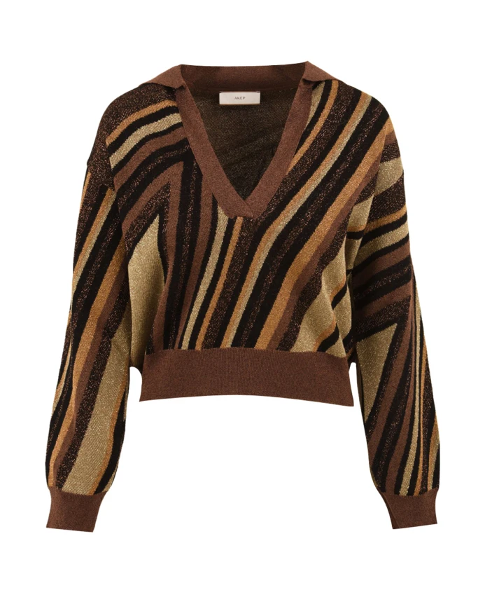 Вязаная рубашка-поло Diagonal Stripe от Akep сочетает в себе классический силуэт рубашки-поло с яркой диагональной полосой с добавлением люрекса, предлагая элегантный и стильный вариант как для повседневной носки, так и для вечерних образов. Ключевые особенности: Многоцветная | Вискоза | Классический воротник | V-образный вырез | Контрастная диагональная полоса | Металлизированные люрексовые нити для сияющего блеска | Состав и уход: 53% вискоза | 24% хлопок | 15% металлизированная нить | 8% полиамид