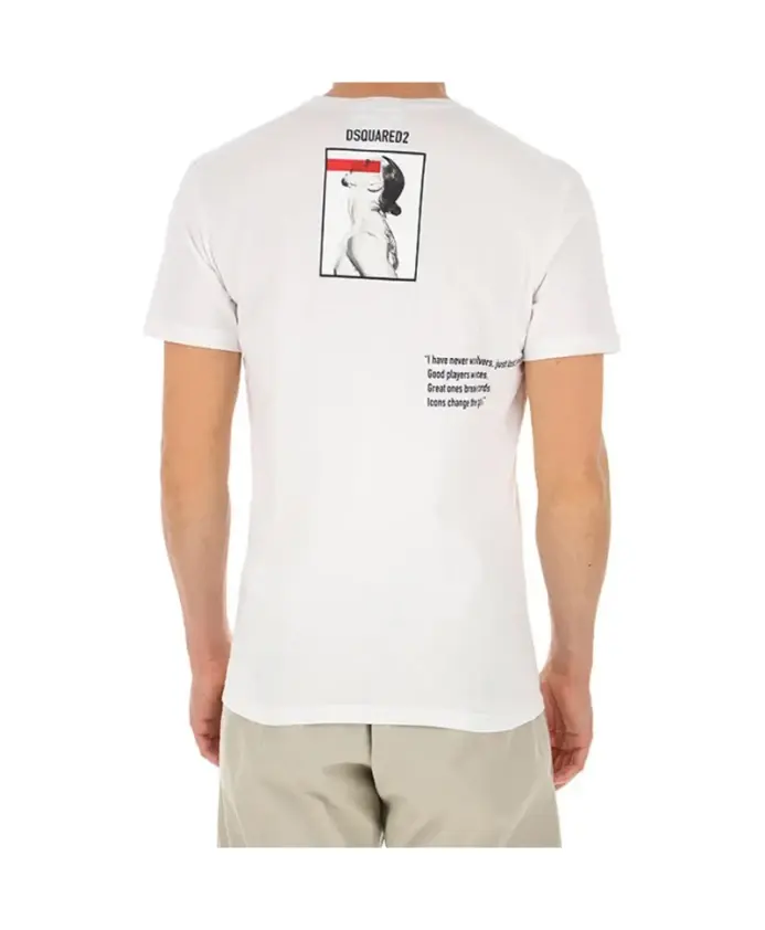 Футболка Dsquared2 с круглым вырезом сочетает в себе простой круглый вырез и принт на передней части, что делает ее универсальной для повседневной носки. Ее лаконичный силуэт позволяет легко сочетать ее с другой одеждой или носить отдельно. Основные характеристики: Белый | Хлопок | Круглый вырез | Однотонный цвет с принтом | Короткие рукава | Состав и уход: 100% хлопок | Ручная стирка; не отбеливать; не подвергать химчистке; не сушить в сушильной машине; гладить при максимальной температуре 110°C.