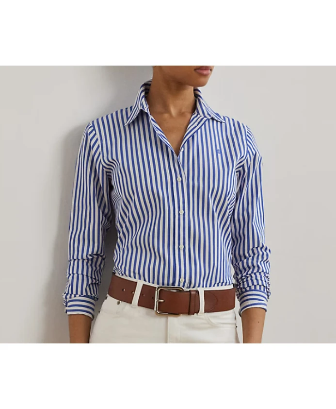 Рубашка Lauren Ralph Lauren Jamelko - это классическая полосатая рубашка из хлопкового поплина, созданная для элегантного повседневного образа. Ее приталенный силуэт и застежка на пуговицах делают ее универсальной вещью. Ключевые особенности: Лазурно-синий | Белый | Хлопок | Застежка на пуговицах | Длинные рукава | Воротник-стойка | Полосатый хлопковый поплин | Минималистичный вышитый логотип на груди | Размеры и посадка: Классический крой | Материал и уход: 100% хлопок | Машинная стирка при 30°C.