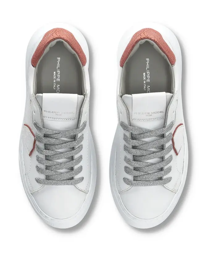 Теннисные кроссовки Temple от Филиппа Моделя - это стильное сочетание комфорта и элегантности, отличающееся уникальной перфорированной кожаной вставкой на пятке розового цвета с эффектом шнуровки. Ключевые особенности: Белый | Коралловый | Розовый | Телячья кожа | Съемная стелька из пеноматериала с эффектом памяти | Перфорированная кожаная вставка на пятке с эффектом шнуровки | Серебряные шнурки | Сверхлегкая резиновая подошва | Высокий каблук | Состав и уход: Телячья кожа | Кожа | Махровая ткань
