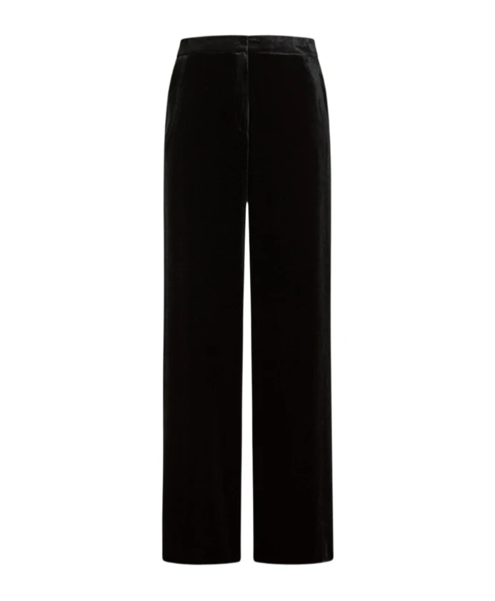 Брюки Momoni Wide Leg Trousers имеют приталенный силуэт с широкими штанинами и высокой талией, создавая элегантный и непринужденный образ, подходящий как для работы, так и для повседневной одежды в стиле smart casual. Основные характеристики: Черный цвет | Вискоза | Застежка на молнию и пуговицу | Шлевки для ремня | Передние карманы | Прорезные карманы сзади | Широкие штанины | Складки спереди | Высокая талия | Размеры и посадка: Широкий крой | Высокая талия | Состав и уход: 82% вискоза, 18% шелк