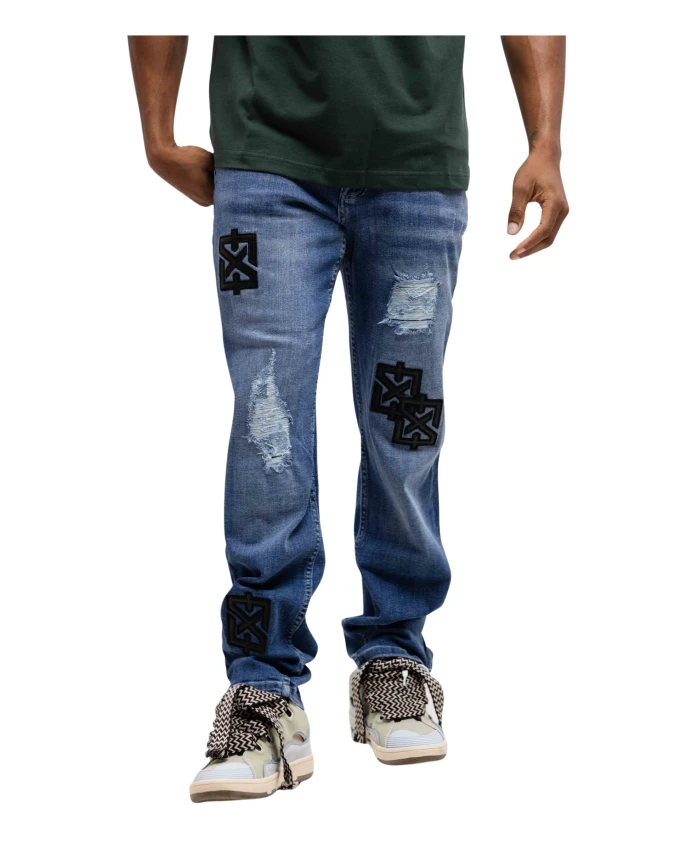 Синие мужские джинсы с нашивками Xplct Studios, синий