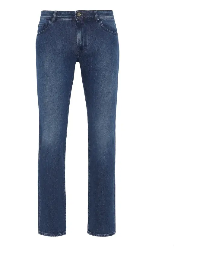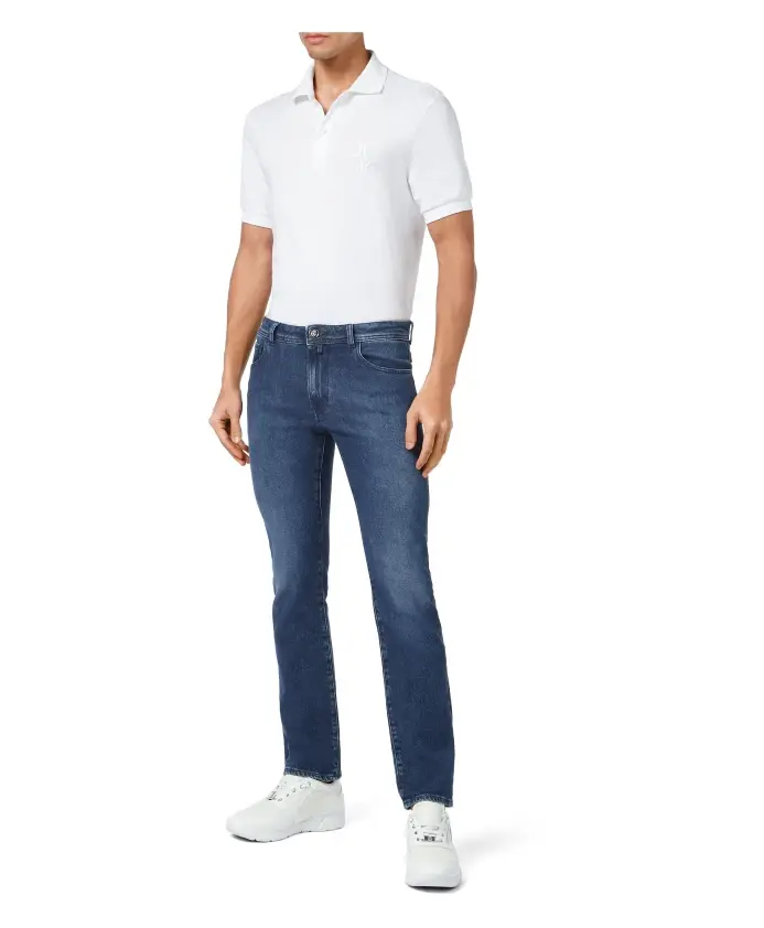 Брюки Billionaire Denim Super Straight Cut имеют идеально прямой силуэт, выполнены из джинсовой ткани с эффектом потертости и имеют принт на спине, что идеально подходит для создания изысканного повседневного образа. Ключевые особенности: Синий | Средне-синий | Джинсовая ткань | Потертость | Эластичная ткань | Пять карманов | Одна металлическая пуговица | Принт на спине | Нашивка с логотипом Maxi на поясе сзади | Размеры и посадка: Супер прямой крой | Состав и уход: Ткань: 99% хлопок, 1% эластан
