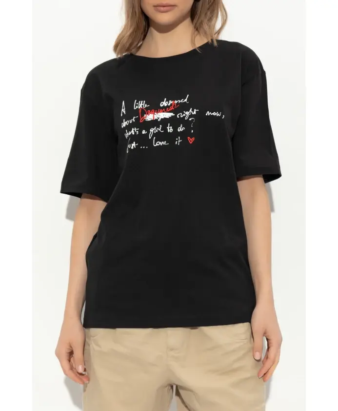 Откройте для себя уникальную футболку с принтом от Dsquared2, сочетающую в себе изысканную простоту и модный дизайн. Эта черная футболка из высококачественного хлопка обеспечивает непревзойденный комфорт и мягкость на ощупь. Ключевые особенности: Черный | Хлопок | Круглый вырез | Короткие рукава | Надпись, выполненная от руки | Небольшое красное сердечко | Размер и посадка: Классический крой | Состав и уход: 100% хлопок | Машинная стирка в холодной воде, сушка в барабане при низкой температуре.