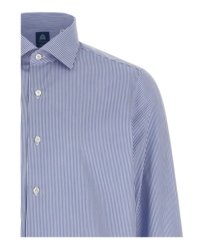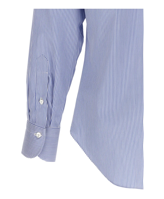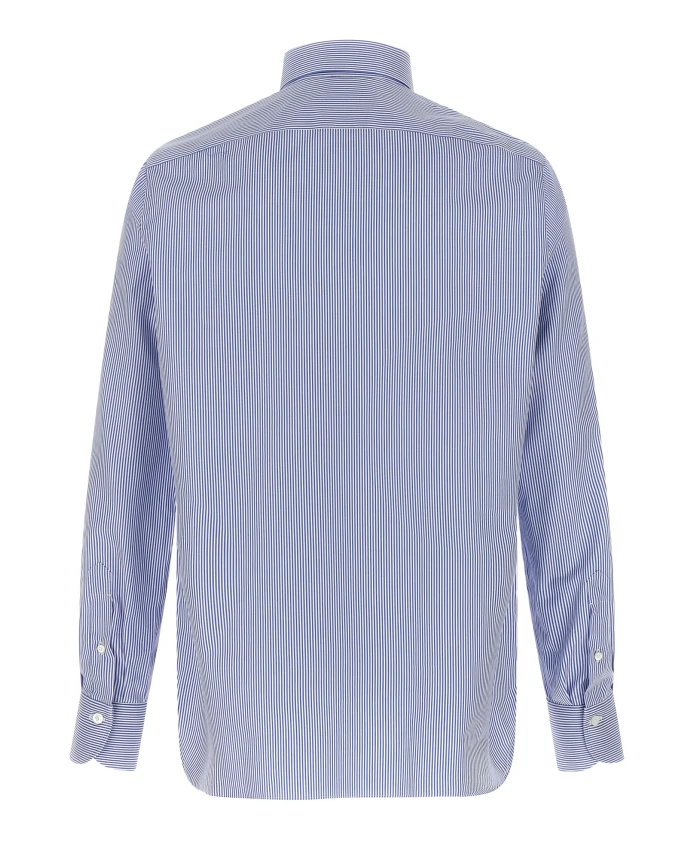 Рубашка Finamore Napoli сочетает в себе классический неаполитанский крой и изящную атласную деталь с логотипом. Изготовленная из хлопка, она имеет длинные манжеты на рукавах и боковые разрезы с контрастным атласным логотипом, что делает ее стильной повседневной рубашкой. Ключевые особенности: Синий | Хлопок | Застежка на пуговицы | Длинные манжеты на рукавах | Контрастная атласная деталь с логотипом на боковых разрезах | Размеры и посадка: Стандартный крой | Состав материала и уход: 100% хлопок