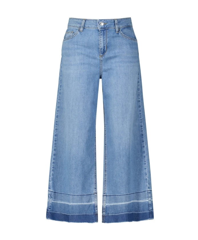 Эти широкие джинсы от Liu Jo имеют расклешенные штанины и укороченный крой, что гарантирует привлекательный силуэт благодаря особой посадке снизу вверх. Средняя посадка на талии со скрытой застежкой на молнию и пуговицу обеспечивает надежную фиксацию. Выполненные в классическом стиле с пятью карманами, эти джинсы украшены едва заметной вышивкой логотипа на правом заднем кармане и полосатым низом, что добавляет им современного шарма. Исключительный комфорт делает их стильными и универсальными.