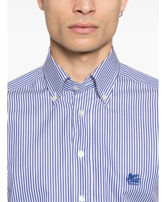 Рубашка Pegaso Button-Down от Etro - это полосатая рубашка из хлопкового поплина с вышивкой Pegaso в тон ткани. Она создает элегантный повседневный образ, подходящий для повседневной носки. Ключевые особенности: Синий | Светло-синий | Хлопок | Застежка на пуговицы | Воротник на пуговицах | Манжеты на пуговицах | Полосатый узор | Вышивка Pegaso в тон ткани | Длинные рукава с манжетами | Поплиновая ткань | Воротник на пуговицах | Размеры и посадка: Стандартный крой | Состав и уход: 100% хлопок