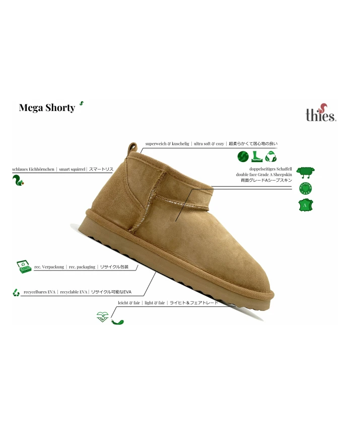 Ботинки Thies 1856 Mega Shorty - это классический, вневременной стиль, изготовленные из 100% овчины как снаружи, так и внутри, для теплой повседневной зимней носки. Ключевые особенности: Бежевый цвет | Овечья кожа | Теплый утеплитель | Мягкая, уютная внутренняя подкладка | Овечья подкладка и стелька | Резиновая подошва | Короткое голенище | Классический, вневременной силуэт | Размеры и посадка: Стандартная посадка | Состав и уход: Овечья кожа - верх, подкладка, стелька | Резина - подошва