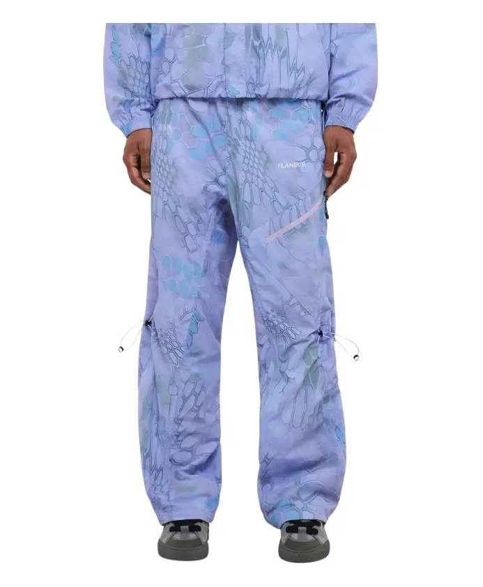 Подчеркните свой стиль с помощью этих широких нейлоновых брюк FLÀNEUR с уникальным принтом в виде черепахи по всей поверхности. Благодаря регулируемому эластичному поясу и технологичному, вдохновленному утилитарными технологиями дизайну, эти сине-фиолетовые брюки действительно привлекают внимание. Изготовлены из 100% нейлона. Модель ростом 188 см носит размер L. Откройте для себя производственный процесс, сертифицированный по стандарту GOTS, который гарантирует как качество, так и стиль.